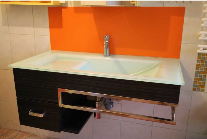 Spritzschutz hinter dem Waschbecken im Badezimmer